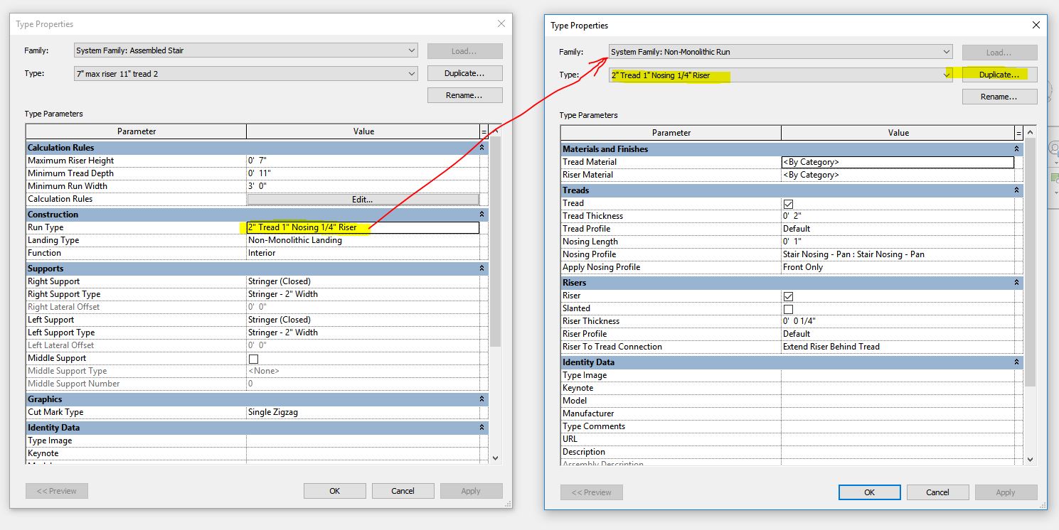 Even though you duplicated the stair, they’re both still using the same Run Type, so in addition to duplicating the stair, you still need to duplicate the Run Type.