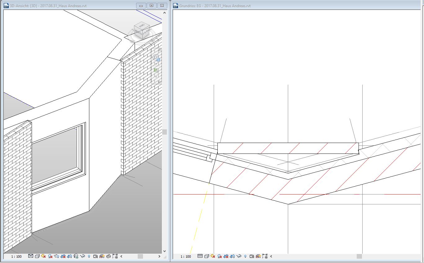 2. There is also another problem, please see attached wall zoom, the brick wall is in a shape of triangle. No clue how that was build, as it is an existing building and there is no way to inwestigate. Old plans from 70's show no details. How should I change the bricks profile and create this triangle?