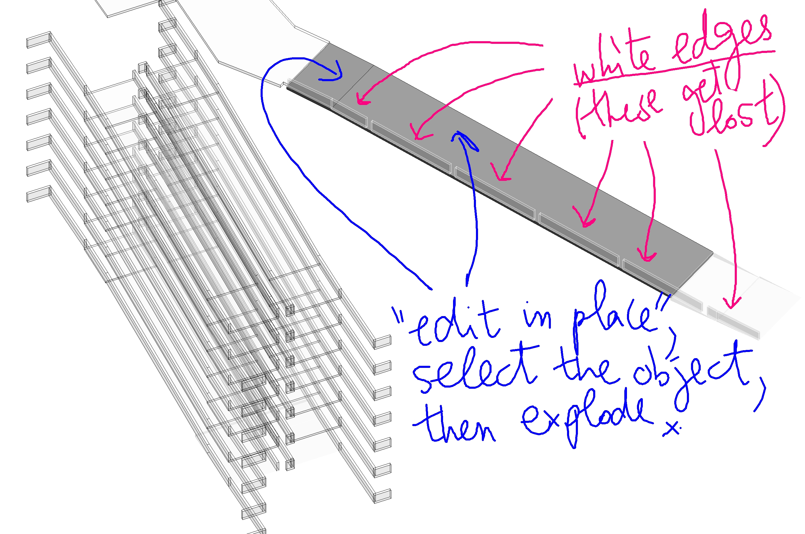All of these objects, good or bad, are "generic models". The only thing that works is selecting the "grey-edged-object", hitting "edit in place", then selecting the actual geometry and exploding it. Then finish and all over again.This is horribly time consuming and nerve-racking. I am convinced there is a better alternative.My money is on:- a better way to export from nemetschek (but i don't know what to ask for)- a dynamo-driven way to automatically explode all this geometry (but unfortunately I don't know how)- a third party app that "fixes" the IFC so it's right when it gets opened up by revit. What do you guys think?