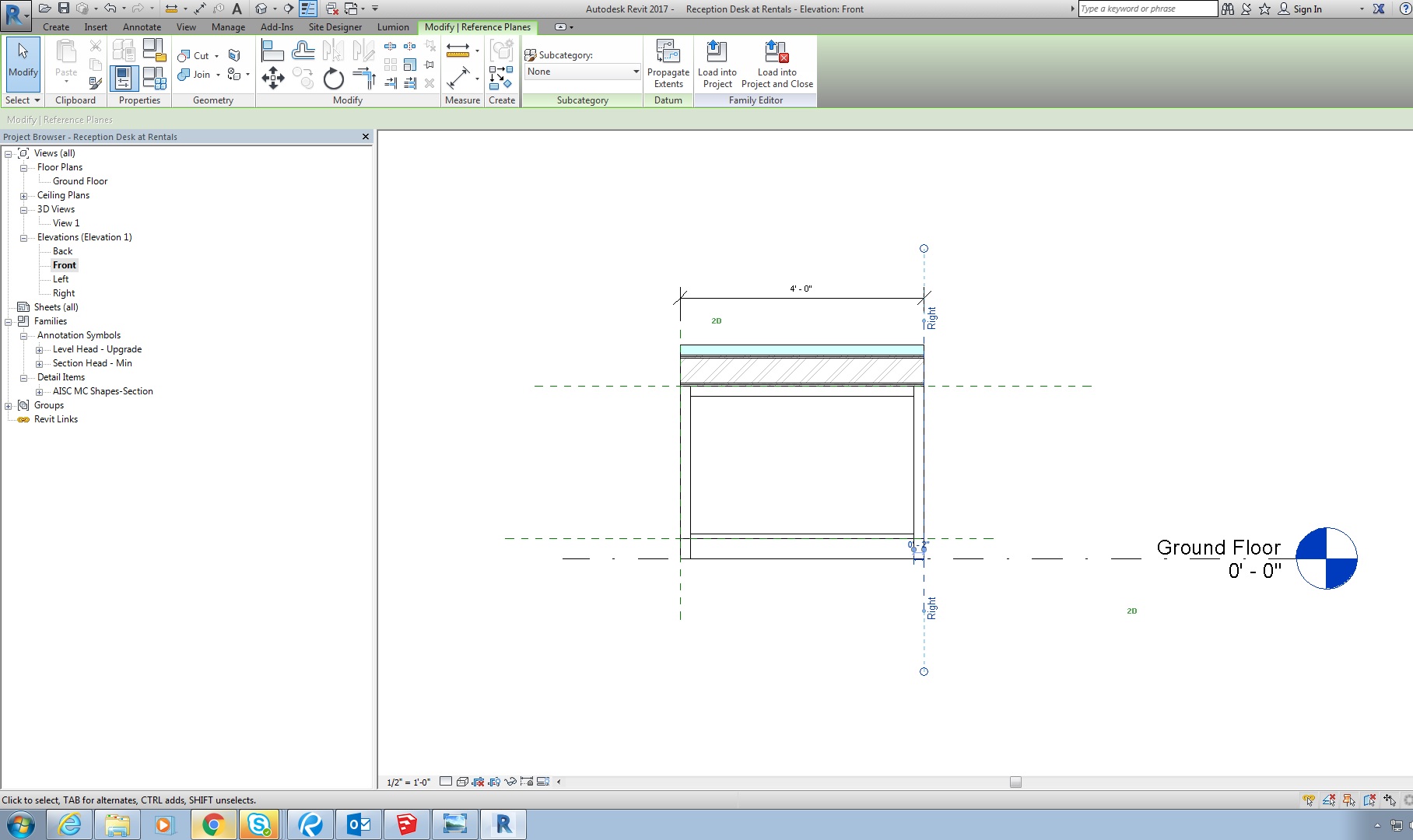 AHHHHHH I have what i think is a simple task, just to stretch the length of all the components of a custom reception desk i am attempting to create. i want it to be 5'6", not 4'. Can't I just dimension between the two reference planes, and set the length to 5'-6", I am so confused, any advice is greatly appreciated. I attached the file itself, I am in 2017. thanks in advance ! maddy