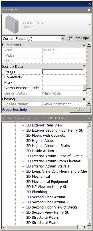 I am using REVIT 2017 in Windows x64 Professional I am trying to get the AREA, WIDTH and HEIGHT grayed out in the PROPERTIES dialogue box below to be placed in the TYPE PROPERIES Dialogue box so my estimating software can tag the area and use the known cost per sq.ft. of glazing in the System Panel GLAZING. Any suggestions on how to do this? See enclosed pics