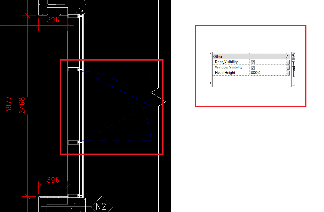 I assigned visibility parameters for both the door and swing panel opening projections on the plan.