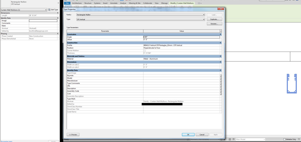 Thanks for the follow up. I tried to upload an image of the properties, but it kept deleting the image of the mullion. See attached.