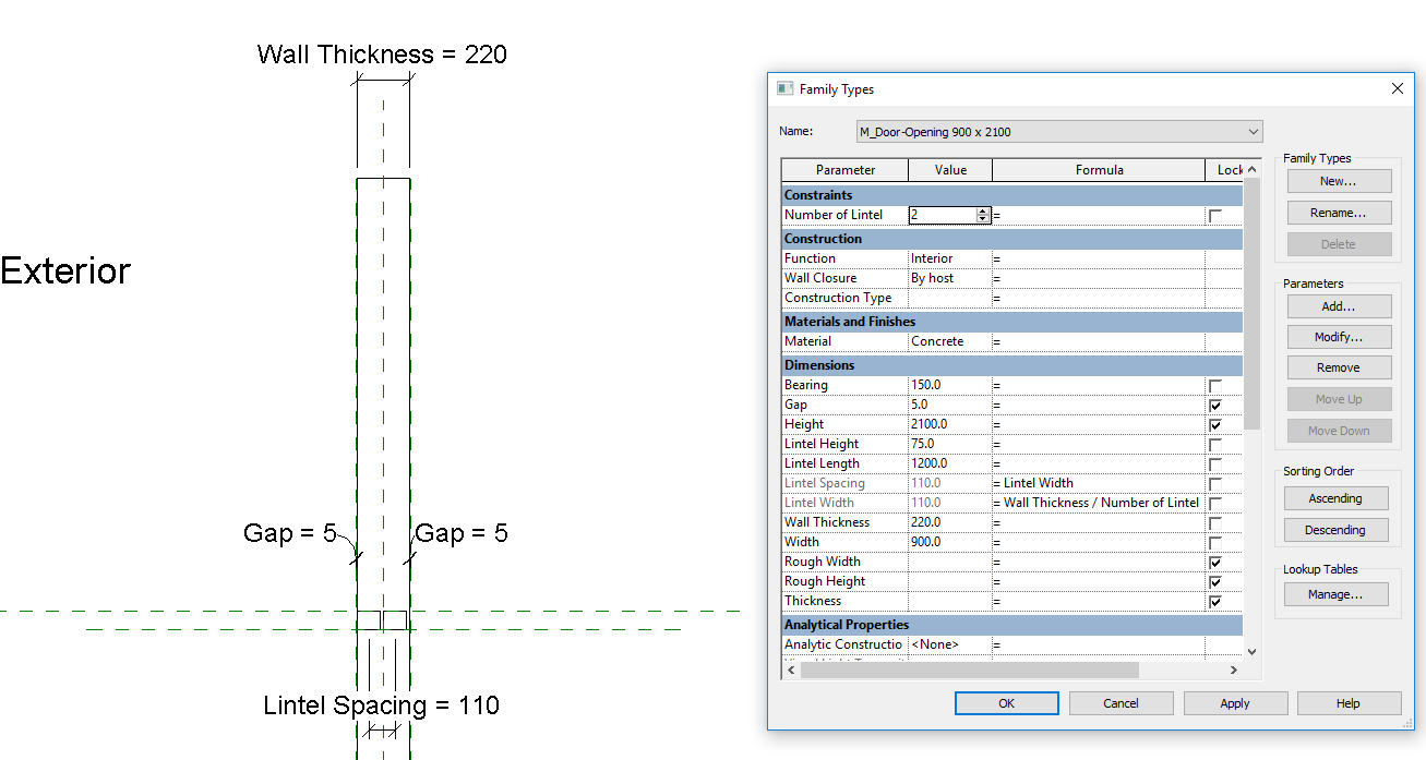 Yes, I mean that I wanted having a lintel adding if the wall thickness increased by wall control in the project. I just want to know how it assigns to wall thickness default. So the Lintel can work out the divided by wall thickness.