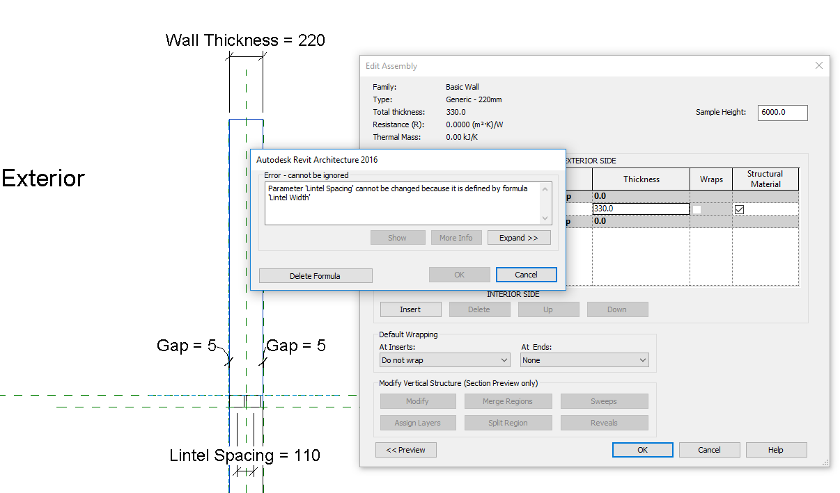 That is what I mean, that is right. The amount of Lintel based on the thickness wall. I have tried it but still got error message :-/ if you have time to try it on your side, please can you share your file with me? That would be kindly appreciated.My file is here, you can have a look through it. My version on 2016.