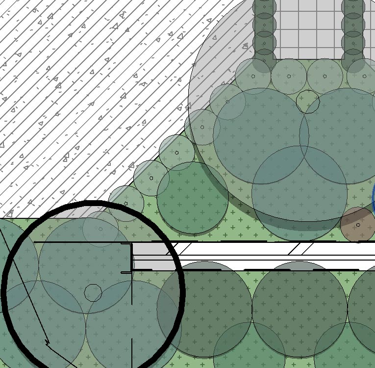 The problem I am having with the extrusion is that I cannot hide the edges (to look like 'Show Edges' is off, or an invisible fill region boundary) of only the plants. There is no invisible line option, or option to turn off the edge without hiding the entire extrusion. I have tried creating 'empty' line patterns to no success.