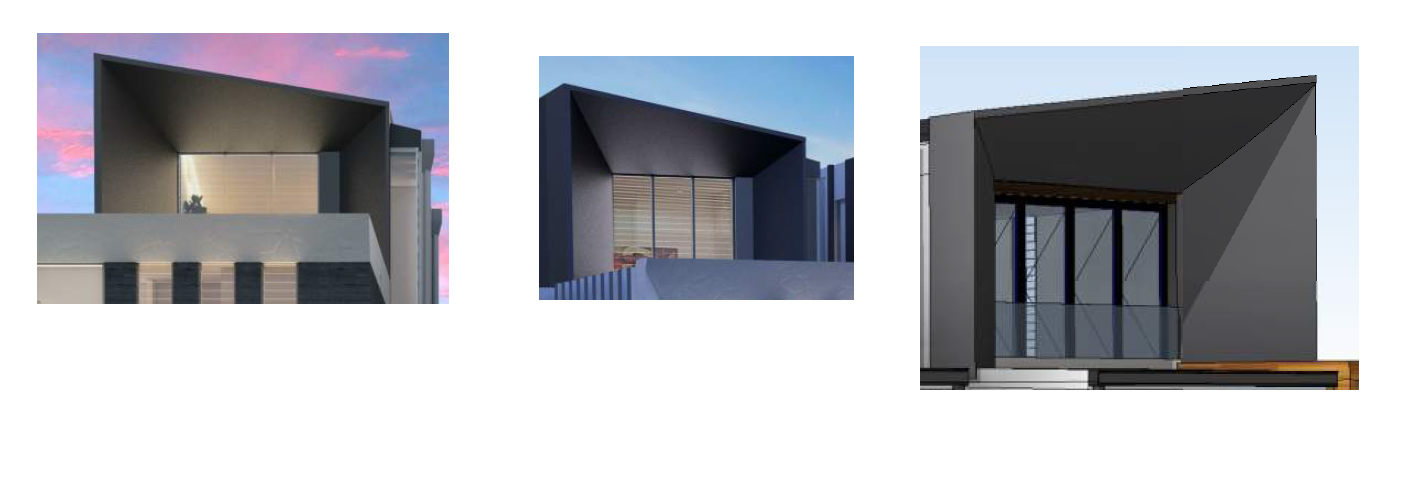 The angled fin wall, not sure else how to explain it. Nothing to do with the glass. See how the angles taper down to different heights on the parapet/fina wall/blade wall. Looking to create this effect.