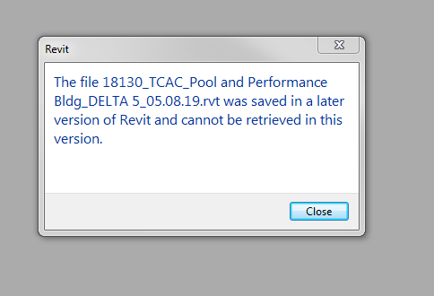 I am having issues opening a .rvt file. I have Revit 2016, 2017, 2019. The file is from 2009. When I try to open the file it says that it cannot open it since the file was saved in a later version. I’ve tried hitting the audit box as well as the detach from central and combinations of the two. Still nothing. Anyone have any history with something like this?