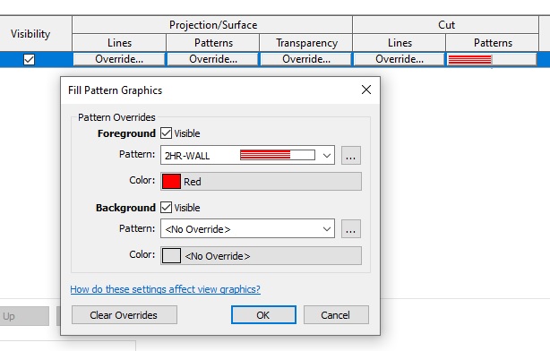 I cant get the rated wall to work using the filters, .pat files and visibility graphics routine. Tried differed scales in the pattern, different orientations, course display but it comes out solid or fine. I need the dashed wall type. What am I doing wrong?