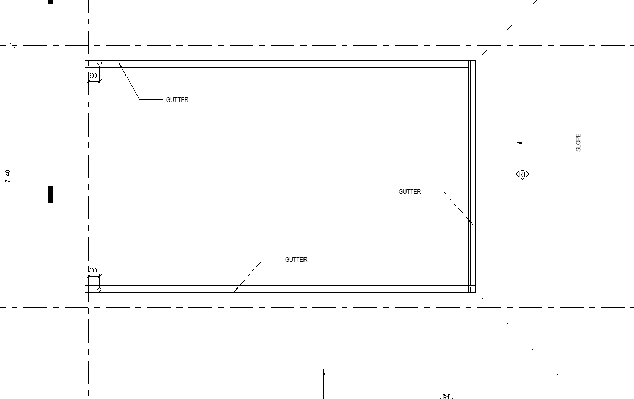 Gutter display on roof plan |