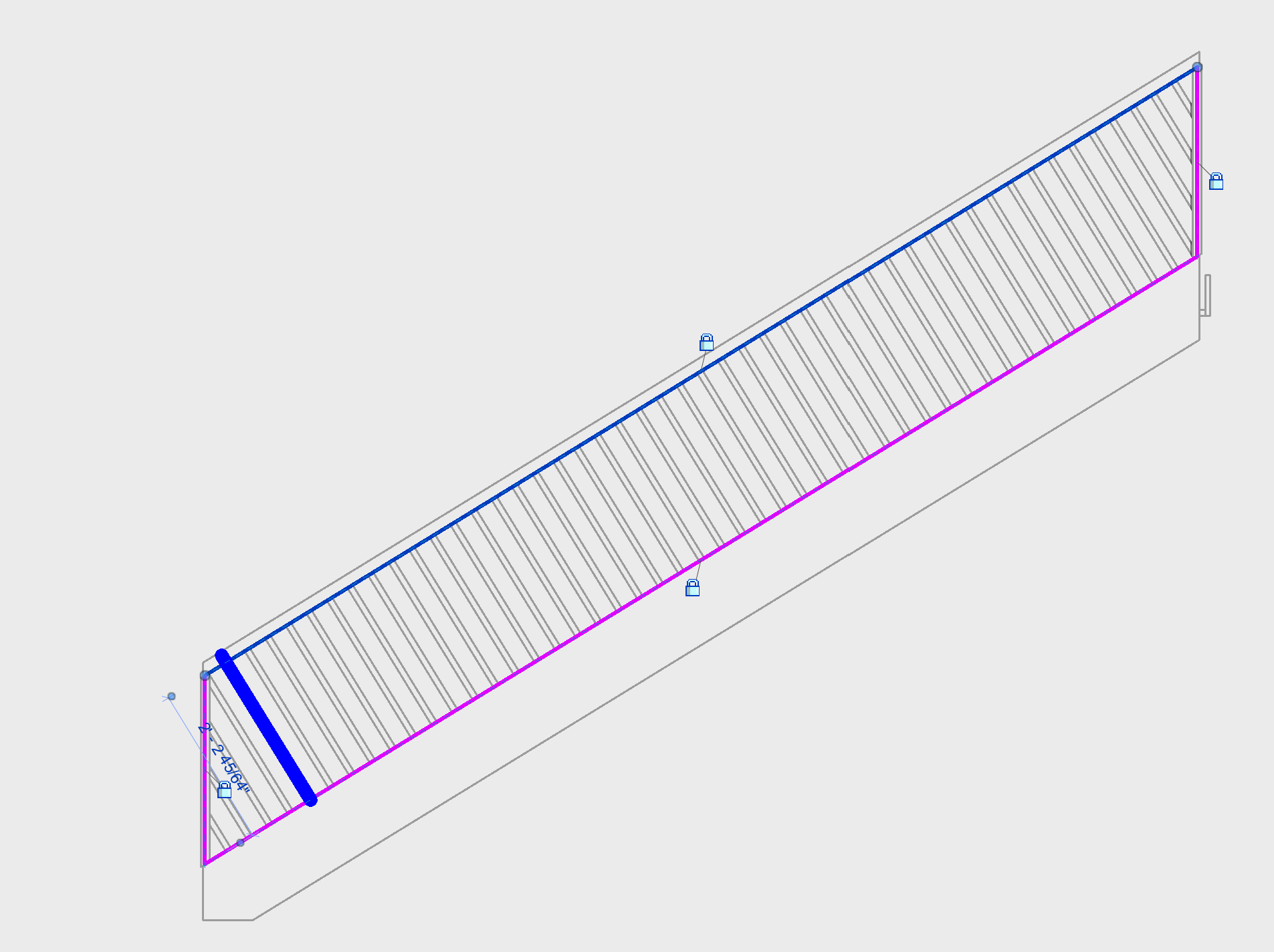 The attached image shows a 2d sketch of the design. Additionally I am attaching an image of where I'm at with the railing. Primarily, it doesn't seem that Revit is able to 'clip' the balusters as they would die into the vertical posts at the top & bottom of the stair where the landings are. Is this even possible? My solution was to end the Path short so the balusters would not pierce through the vertical post, but this leaves triangular voids--as seen in the image--that is not the design intent and is clearly unsafe. I also have the issue of the balusters being vertical along the horizontal landing instead of staying diagonal--presumably because I've edited the baluster so it is perpindicular to the sloped angle?