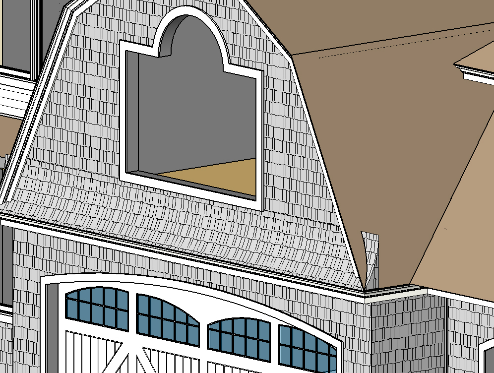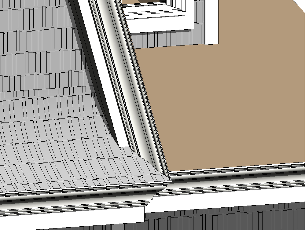 I want to create a curve at the base of a wall. A wall sweep works here. I have one problem I can't seem to get rid of. From the attached screen shot, you might see why I did it the way that I did. I have tried both ways before anyone suggests otherwise. I attached the sweep to the fascia edge, then it converges with the wall. My wall however is not square on the ends. I have a wall drawn with a profile. I can't get the sweep cut at the roof angle.