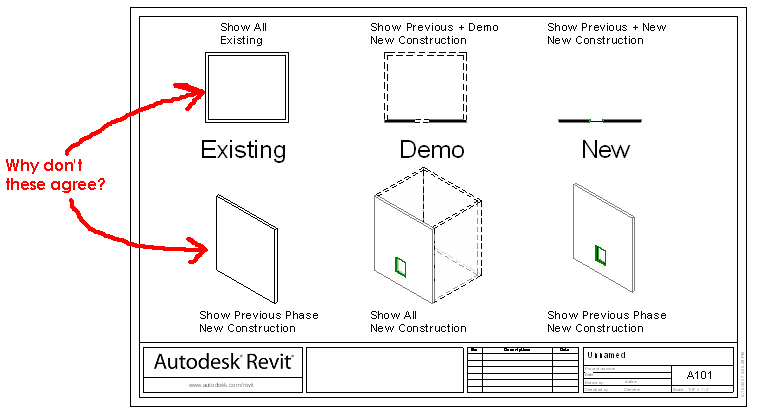 All I know is that I have been using Revit for almost 5 years and have never had a problem with the phase displays. My 3D view if it had different settings is because I did this all in about 45 seconds of time. I have a real job I need to attend to and can't take more time than that right now.