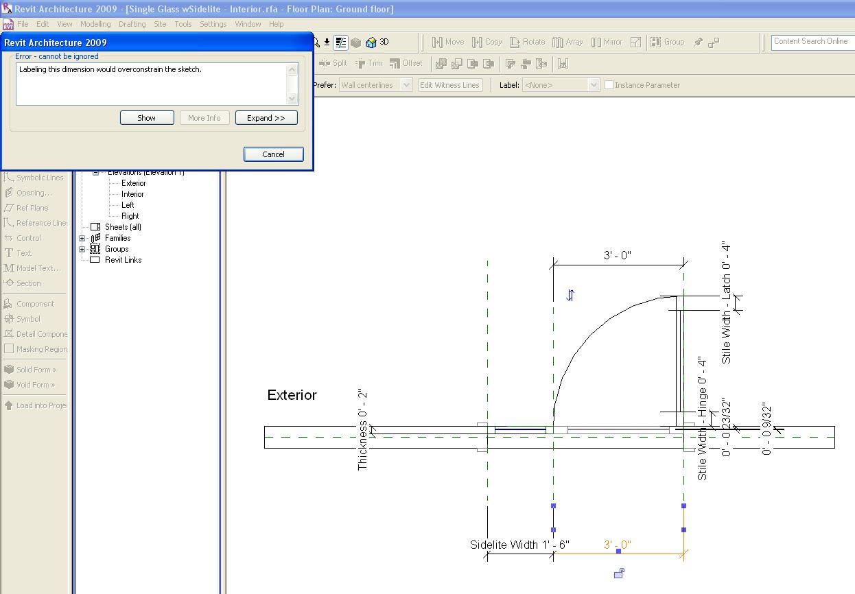 I am following the Revit Tutorial in the Help Menu for Family Creation. I followed along, step by step and when I tried to add a Label parameter to a dimension, this error appeared 'Labeling this dimension would overconstrain the sketch.' I don't know what i am doing wrong. Any advice would be appreciated. thanks.