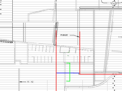 there's a jog in the roof. the red is the edge of the roof. the blue is where that weird problem is, and the green is where that section was taken.