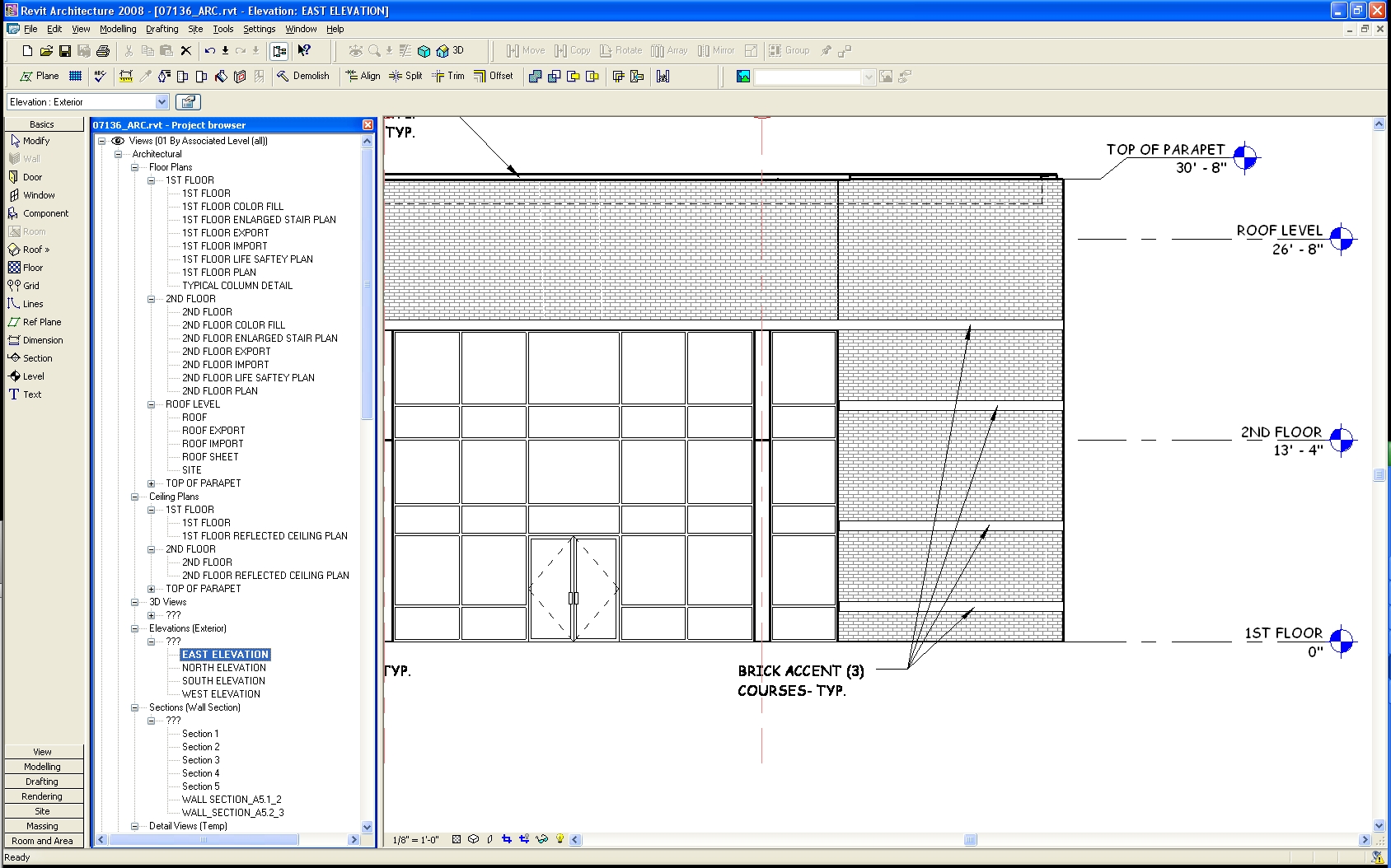 Currently using Revit 2008 build 20071109_2345. In our office we have moved to using windows as storefront systems instead of using the curtain wall feature. This helped us eliminate some issues with our Structural engineers who are using Revit Structure 2008. My issue with this now is that when we make a large window that continues multiple floors, if there is a door opening on the first floor this opening is displayed on every other floor. It seems like no matter what floor you are on it still shows like it is cutting on the first floor. I have attached a really generic example of what I'm talking about.