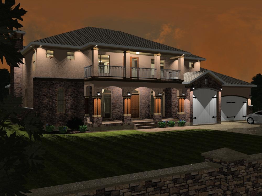 I actually really like this rendering. And the white garage doors are a good contrast. Maybe dull it down a bit. But otherwise great render!
