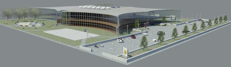 This was for a hypothetical project, of the renovation of a downtown park to what we thought that part of the city needed. So the exterior is all glass to mimic skyscrapers, but it also dosent have and straight exterior walls which were influenced by Frank Ghery. Inside there is a full guy, paintball, lasertag, retail, arcde, bowling alley, and food court. The building is 105000 sqft, our biggest project. If you want i can post interior and night renders, let me know